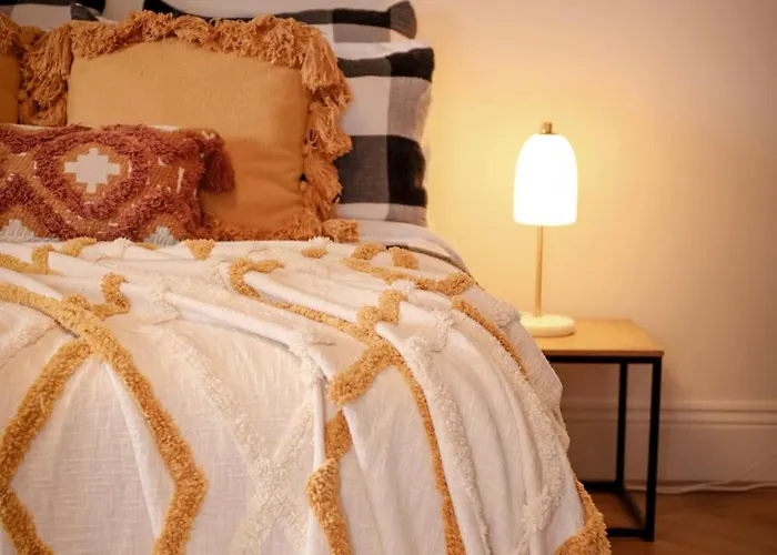 **Accommodations at this home are designed for relaxation,** featuring two spacious bedrooms that provide ample space for families or groups. Each room is thoughtfully decorated, creating a warm atmosphere that reflects the surrounding area's heritage. Guests can enjoy quiet evenings in the tastefully furnished living area, complete with cozy seating and a welcoming ambiance that invites engagement or relaxation.